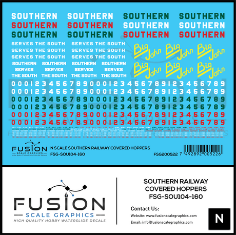 HO Scale Southern Railway Covered Hoppers Decal Set