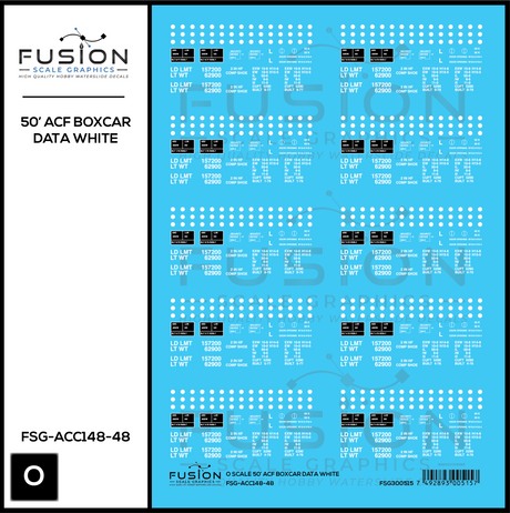 O Scale 50' ACF Boxcar Data Sheet White Decal Set