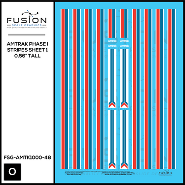 O Scale Amtrak Phase I Stripes Sheet 1 0.56” Tall Decal Set