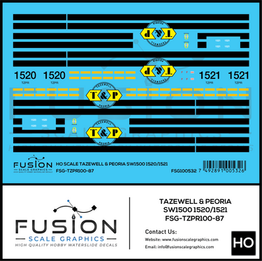 HO Scale Tazewell & Peoria TZPR SW1500 Locomotive Decal Set