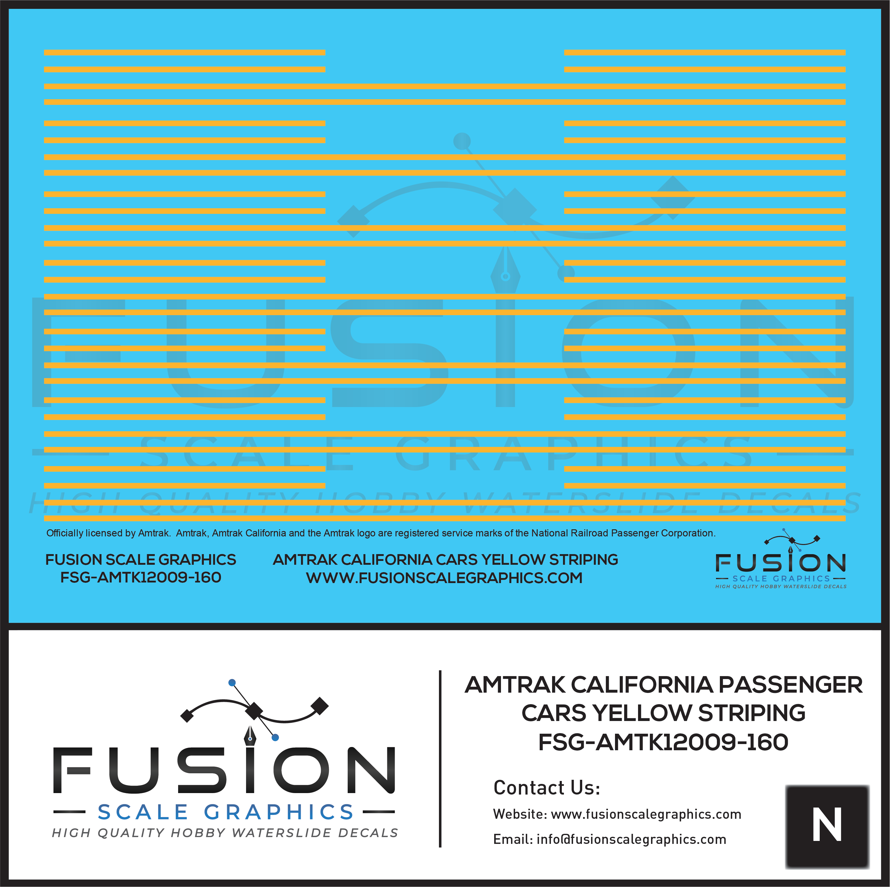 N Scale Amtrak California Passenger Car Yellow Striping Decal Set