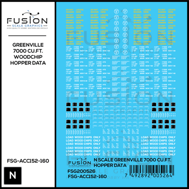 N Scale Greenville 7000 Cu. Ft. Woodchip Hopper Data Decal Set