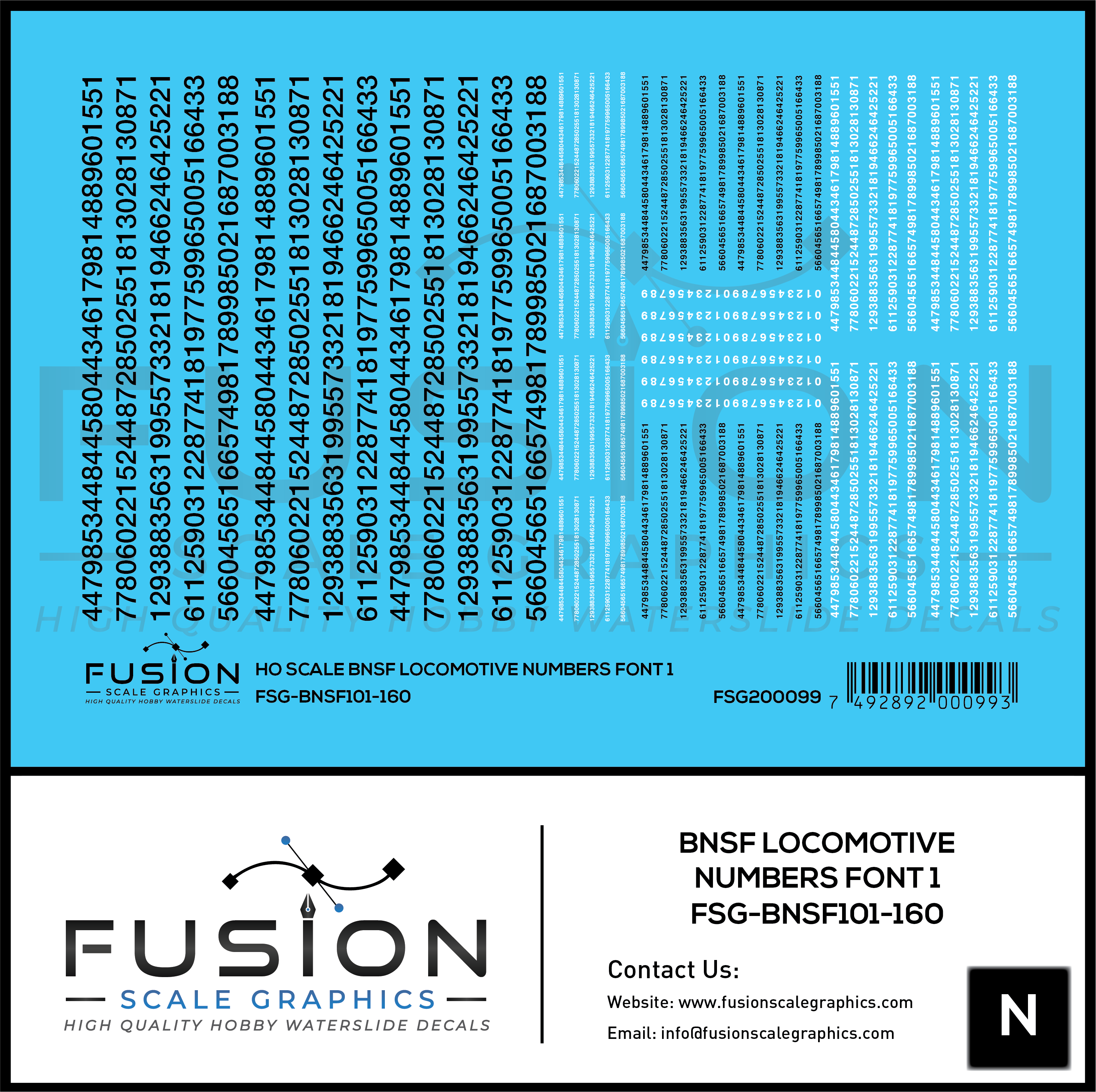 N Scale BNSF Locomotive Numbers Font Decal Set