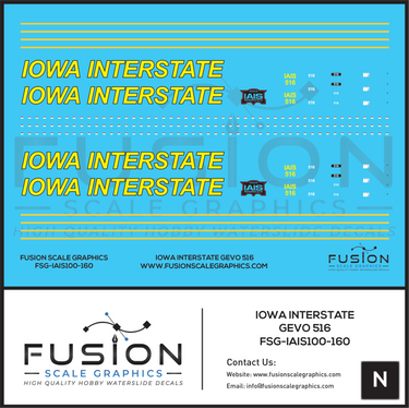 N Scale Iowa Interstate Railroad GEVO 516 Locomotive Decal Set