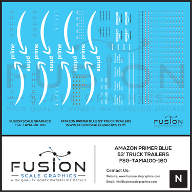 N Scale Amazon Blue 53' Truck Trailer Decal Set Little P Logo
