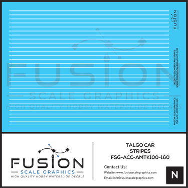 N Scale Talgo Passenger Cars White Striping Decal Set
