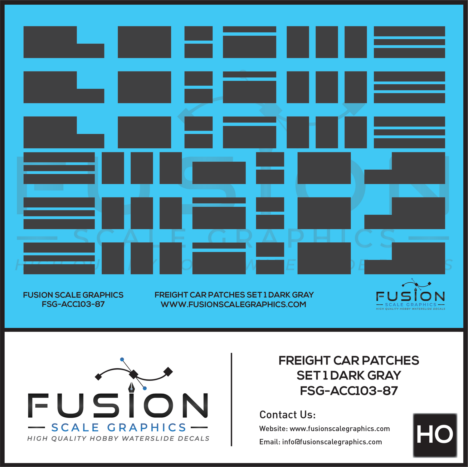 HO Scale Freight Car Patches Set 1 Dark Gray Decal Set may be made to order and will ship within our normal processing time if its not in stock.