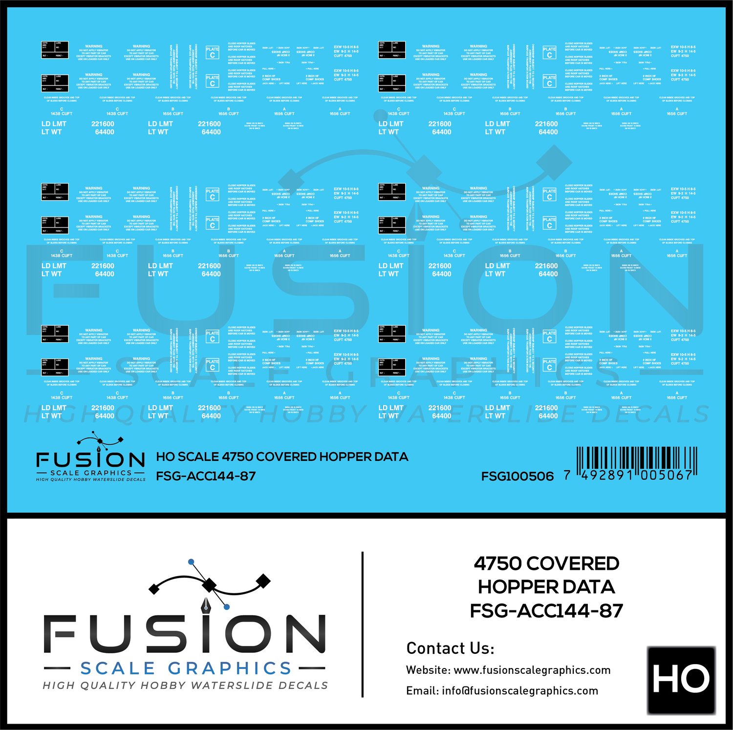 4750 Covered Hopper Data Decal Set. Set will complete 6 cars.