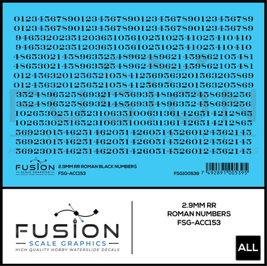 2.9mm Railroad Roman Black Numbers Decal Set