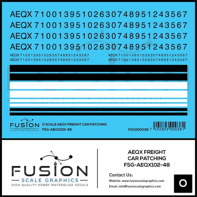 O Scale AEQX Black Freight Car Patching Decal Set may be made to order and will ship within our normal processing time if its not in stock.