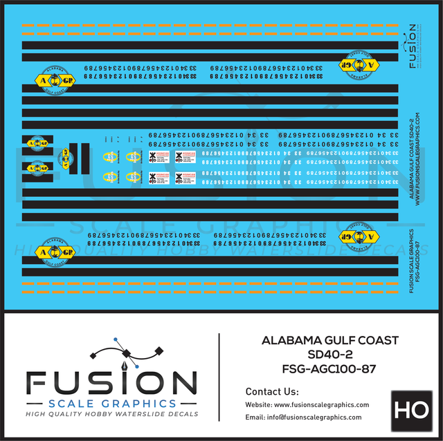 HO Scale Alabama Gulf Coast EMD SD40-2 Locomotive Decal Set may be made to order and will ship within our normal processing time if its not in stock.