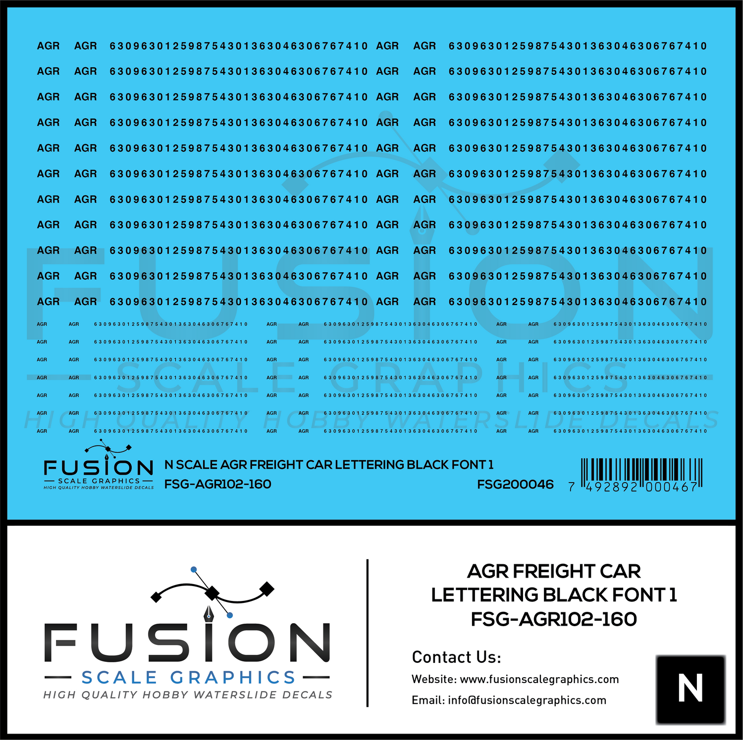 N Scale AGR Freight Car Lettering Black Font 1 Decal Set may be made to order and will ship within our normal processing time if its not in stock.