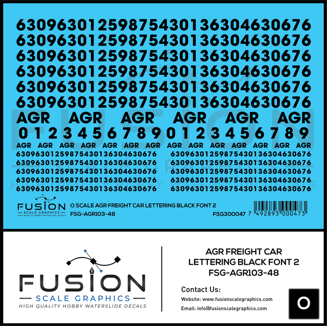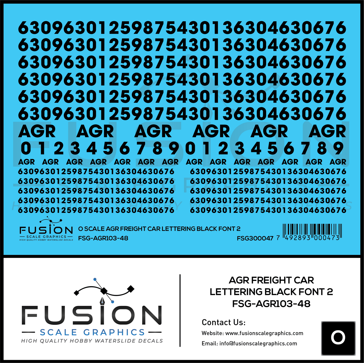 O Scale AGR Black Freight Car Lettering Decal Set Font 2 may be made to order and will ship within our normal processing time if its not in stock.