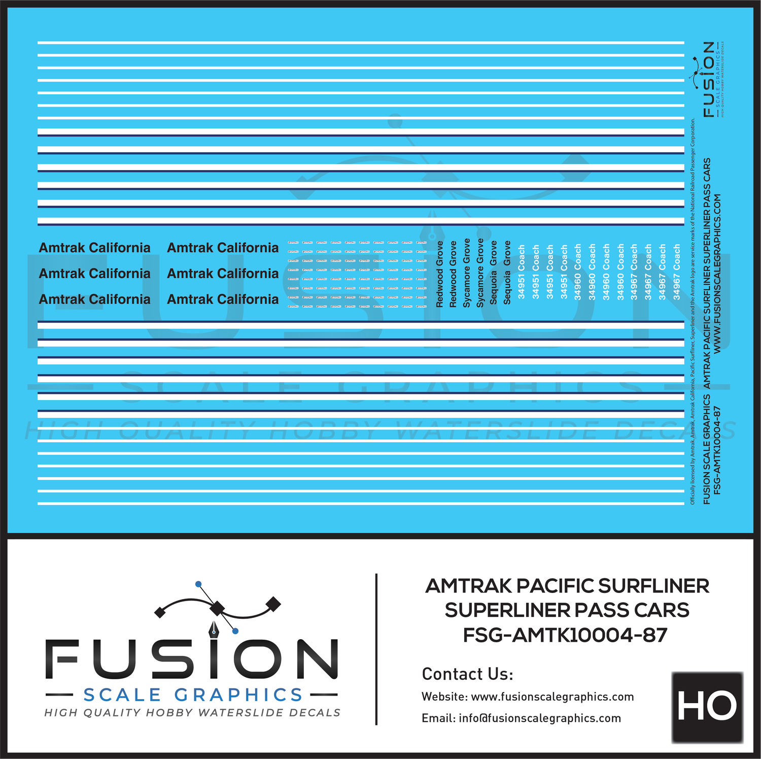 HO Scale Amtrak Pacific Surfliner Superliner Passenger Cars Decal Set