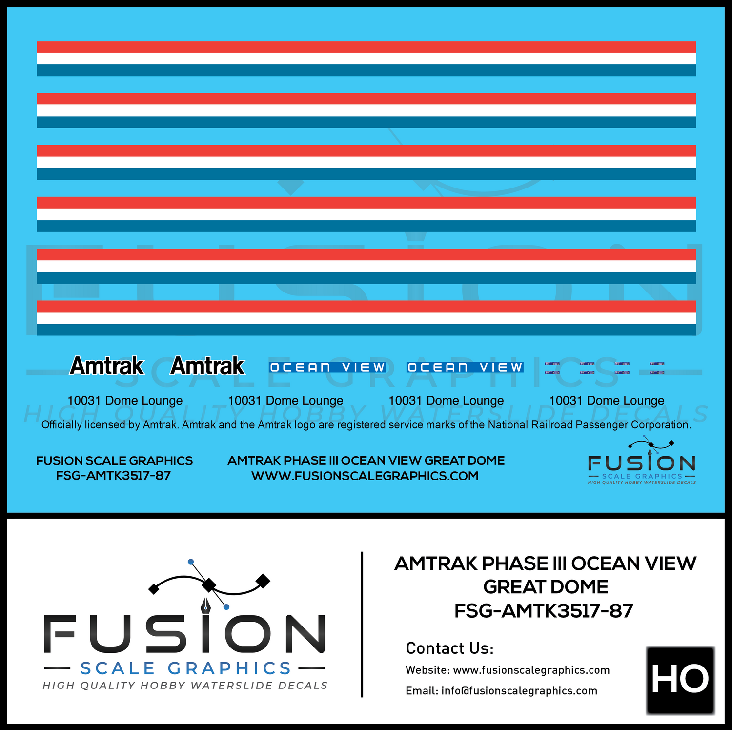 HO Scale Amtrak Phase III Ocean View Great Dome 10031 Decal Set may be made to order and will ship within our normal processing time if its not in stock.
