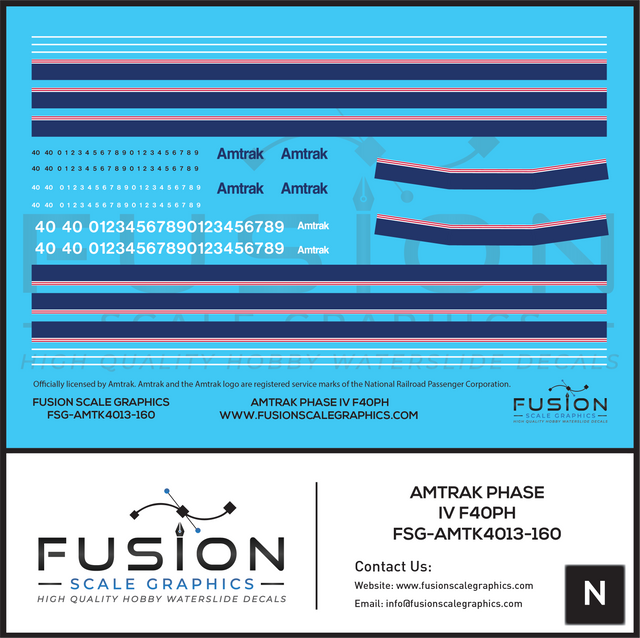 N Scale Amtrak Phase IV F40PH Locomotive Decal Set