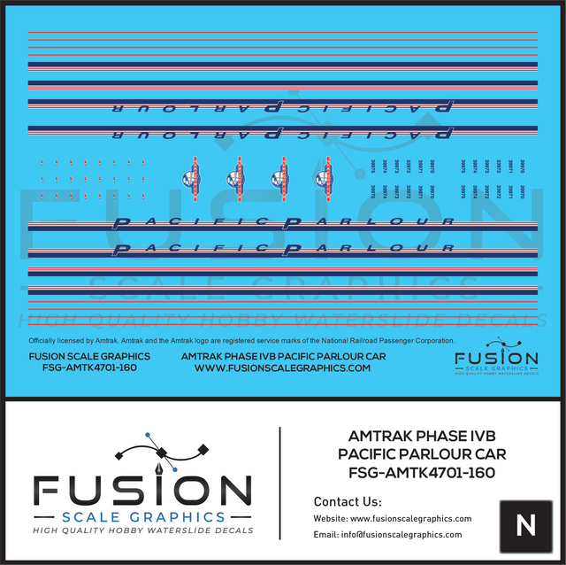 N Scale Amtrak Phase IVb Pacific Parlour Car Decal Set may be made to order and will ship within our normal processing time if its not in stock.