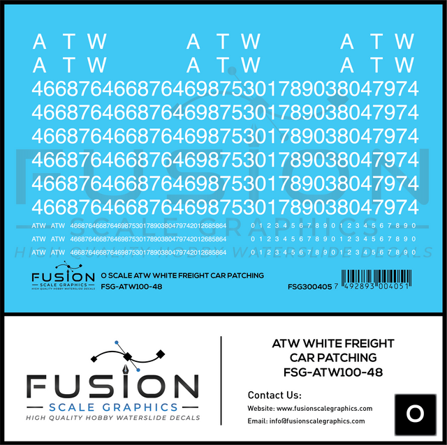 O Scale ATW White Freight Car Patching Decal Set may be made to order and will ship within our normal processing time if its not in stock.