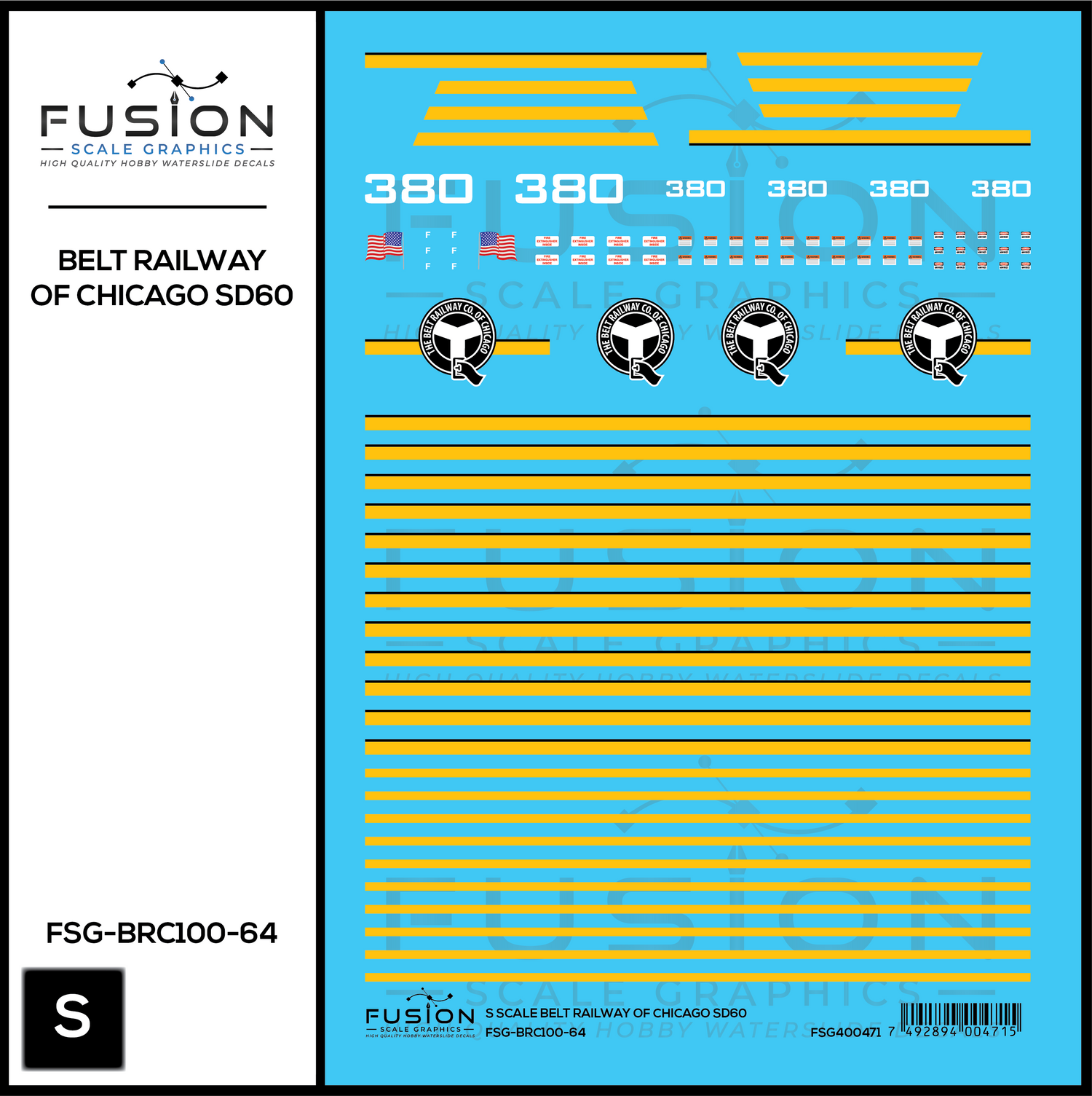 S Scale Belt Railway of Chicago SD60 380 Locomotive Decal Set
