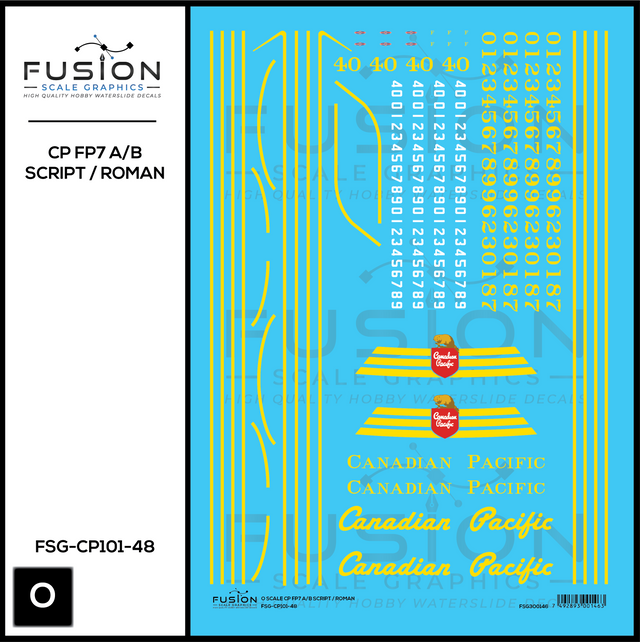 O Scale Canadian Pacific EMD FP7 A/B Locomotives Decal Set may be made to order and will ship within our normal processing time if its not in stock.