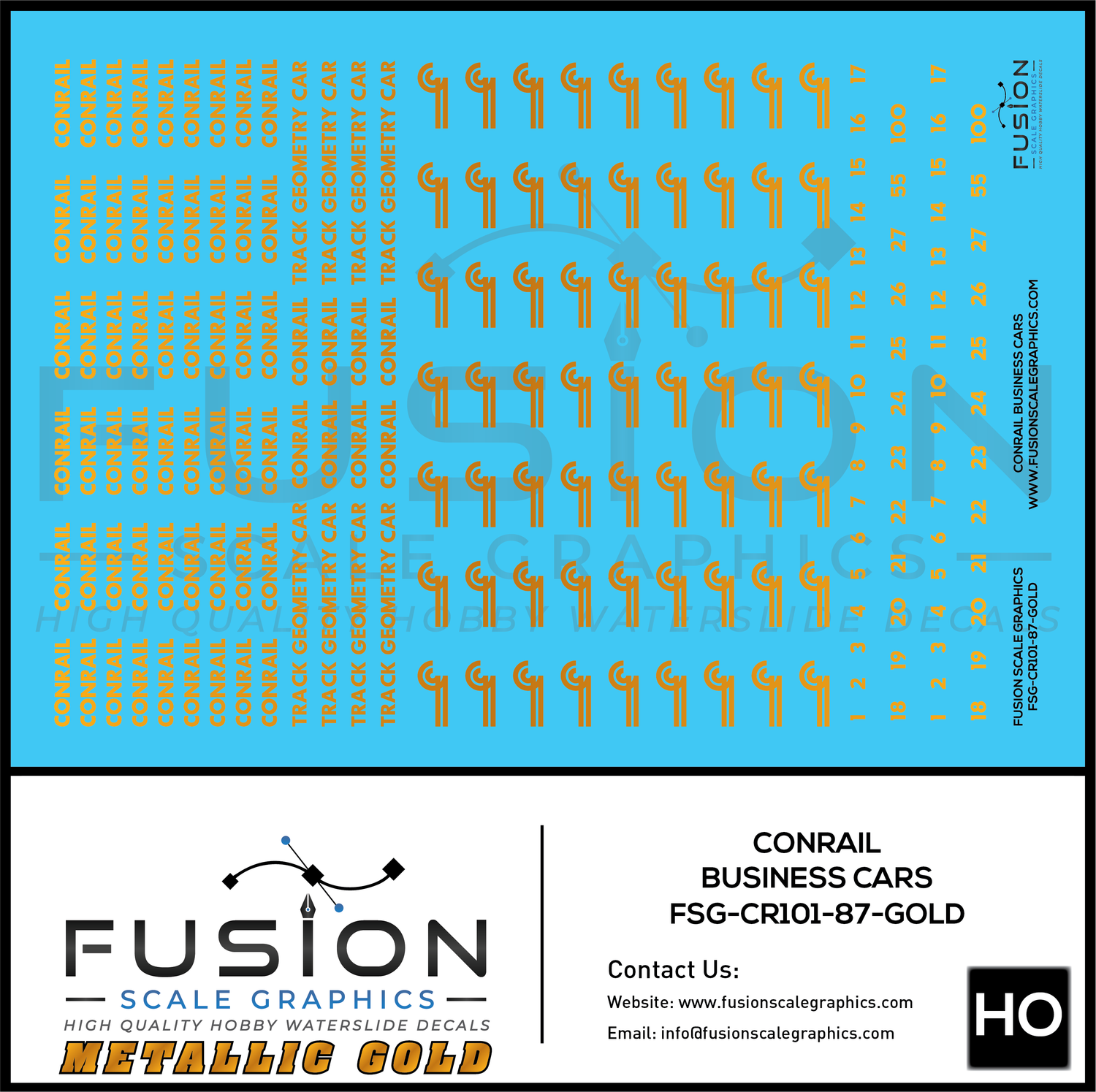 Metallic Gold HO Scale Conrail Business Cars Decal Set