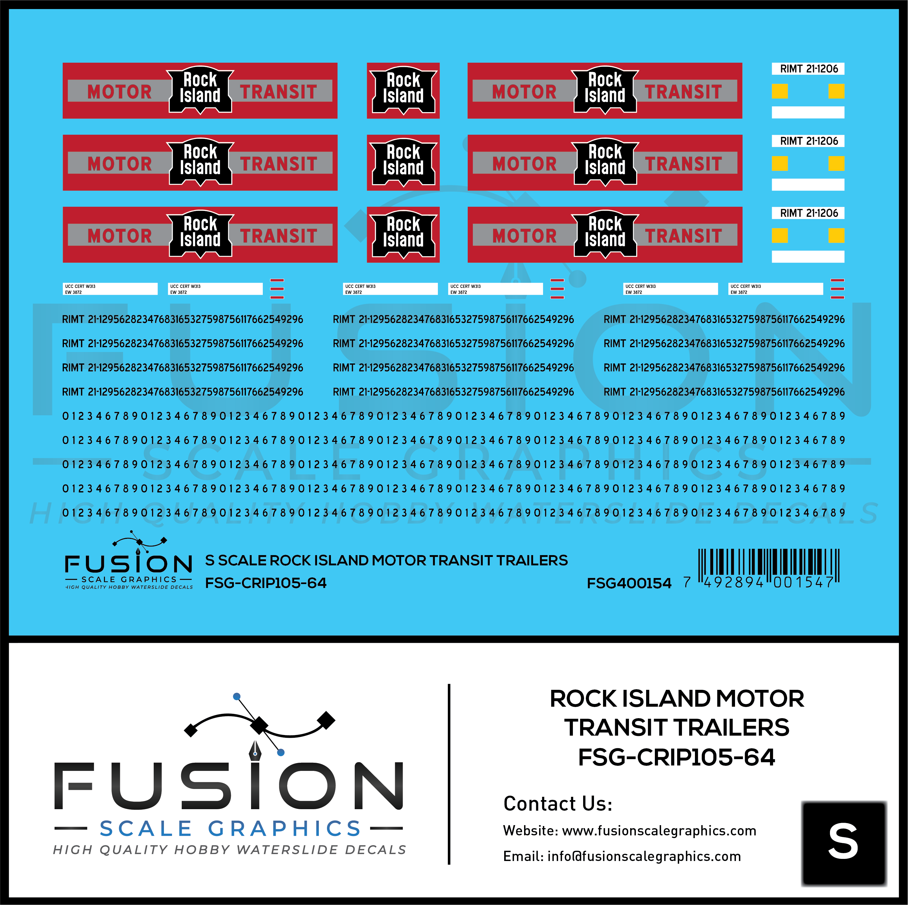S Scale Rock Island Motor Transit Trailers Decal Set