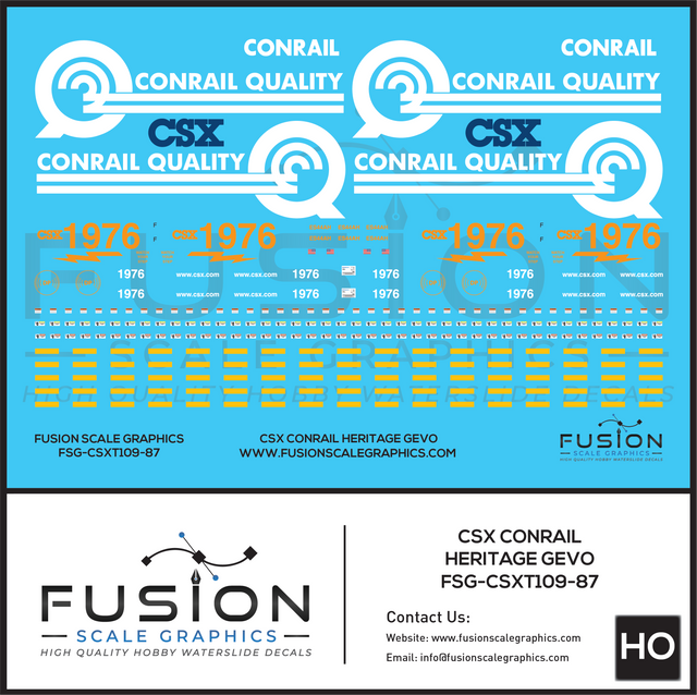 HO Scale CSX Conrail Heritage GEVO Locomotive Decal Set may be made to order and will ship within our normal processing time if its not in stock.