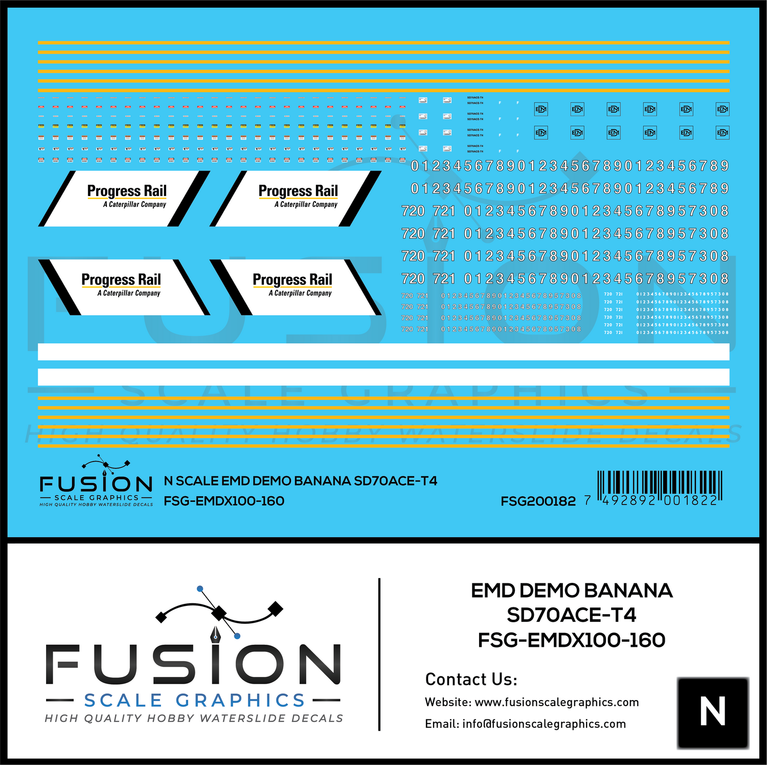 N Scale EMD Demo Banana SD70ACE-T4 Locomotive Decal Set