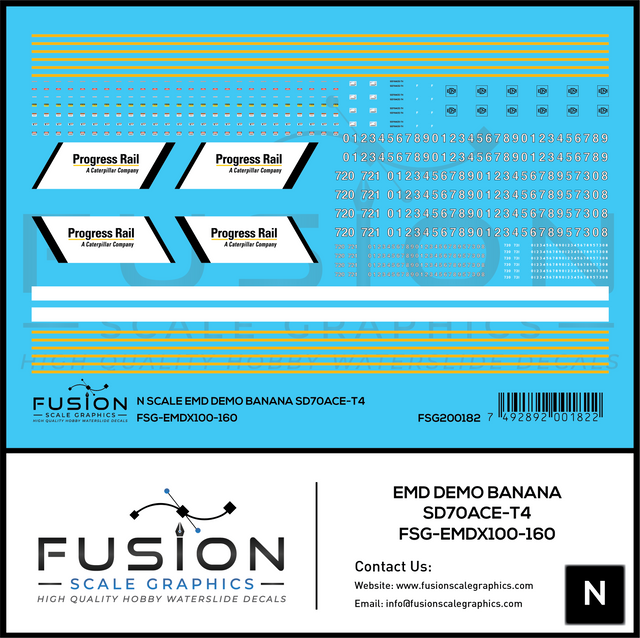N Scale EMD Demo Banana SD70ACE-T4 Locomotive Decal Set may be made to order and will ship within our normal processing time if its not in stock.