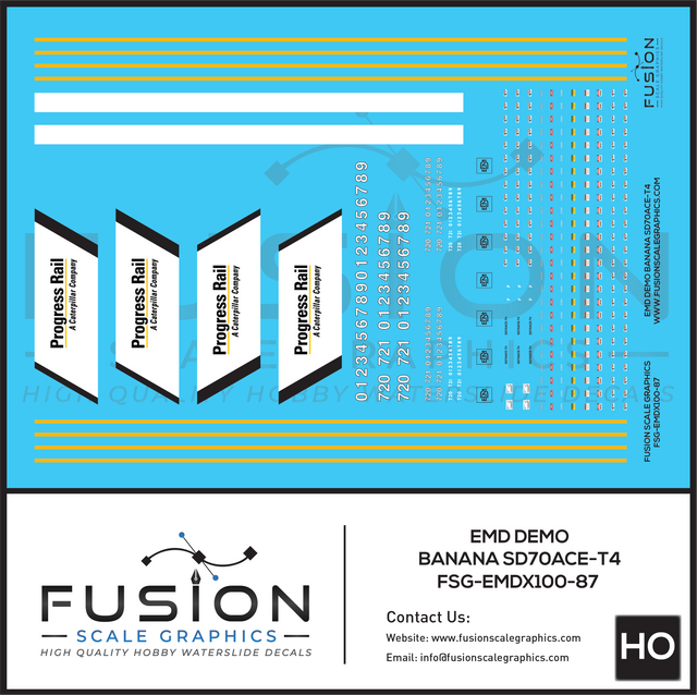 HO Scale EMD Demo T4 SD70ACE Banana Locomotive Decal Set may be made to order and will ship within our normal processing time if its not in stock.