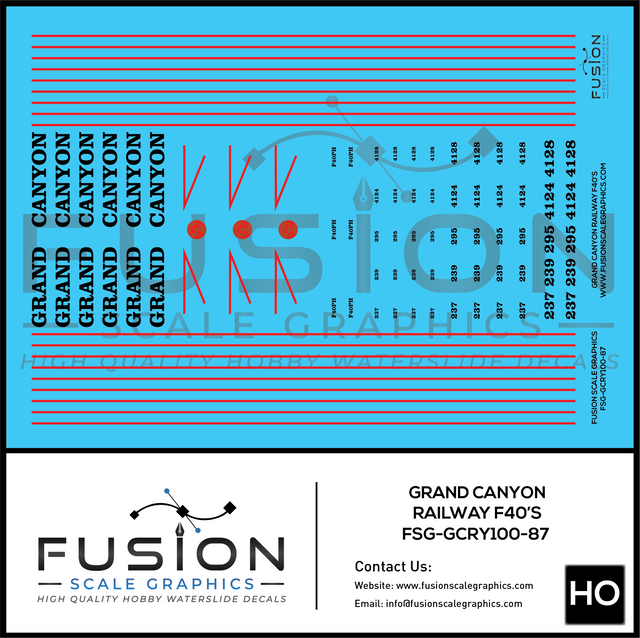 HO Scale Grand Canyon Railway EMD F40PH Locomotives Decal Set may be made to order and will ship within our normal processing time if its not in stock.