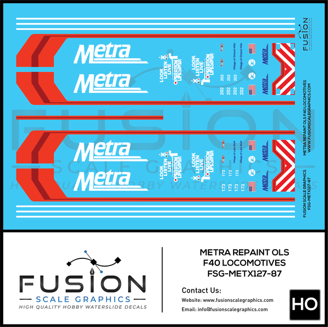 HO Scale Metra Repaint Operation Lifesavor F40 Locomotives Decal Set