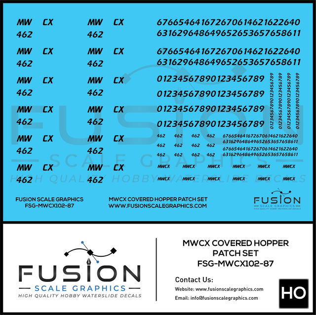 HO Scale MWCX Covered Hopper Patching Decal Set may be made to order and will ship within our normal processing time if its not in stock.