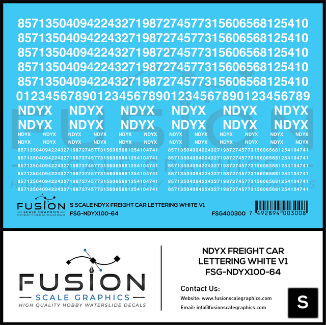S Scale NDYX White Freight Car Lettering V1 Decal Set