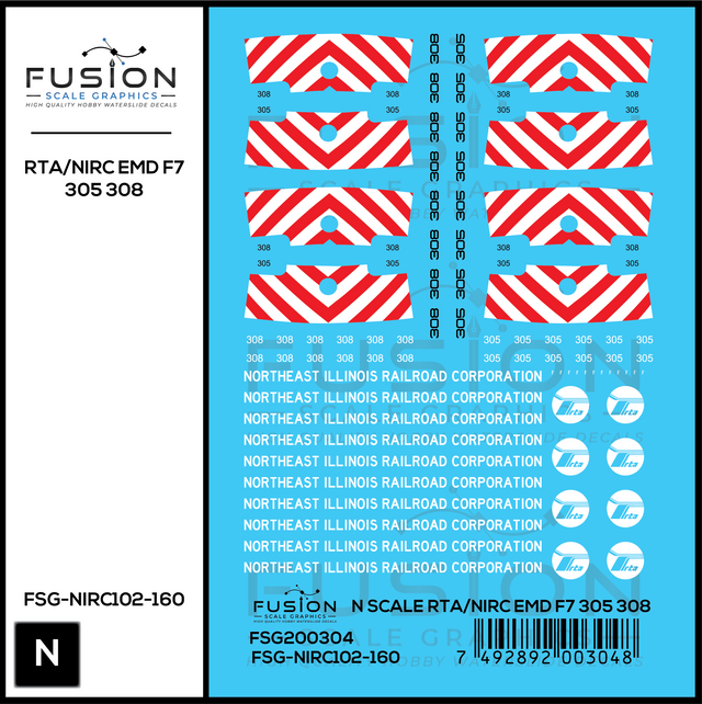N Scale RTA/Northeast Illinois Railroad Corp EMD F7 305, 308 Locomotives Decal Set