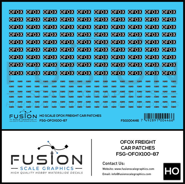 HO Scale OFOX White/Black Freight Car Patch Outs Decal Set may be made to order and will ship within our normal processing time if its not in stock.