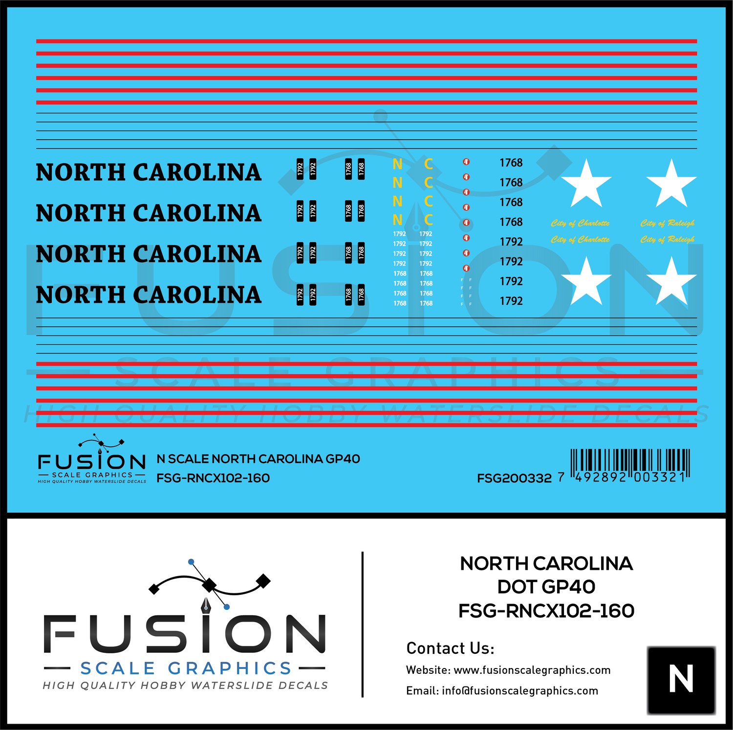 N Scale North Carolina DOT EMD GP40 Locomotive Decal Set