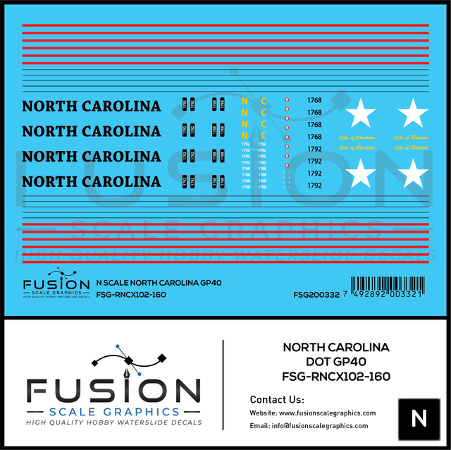 N Scale North Carolina DOT EMD GP40 Locomotive Decal Set may be made to order and will ship within our normal processing time if its not in stock.