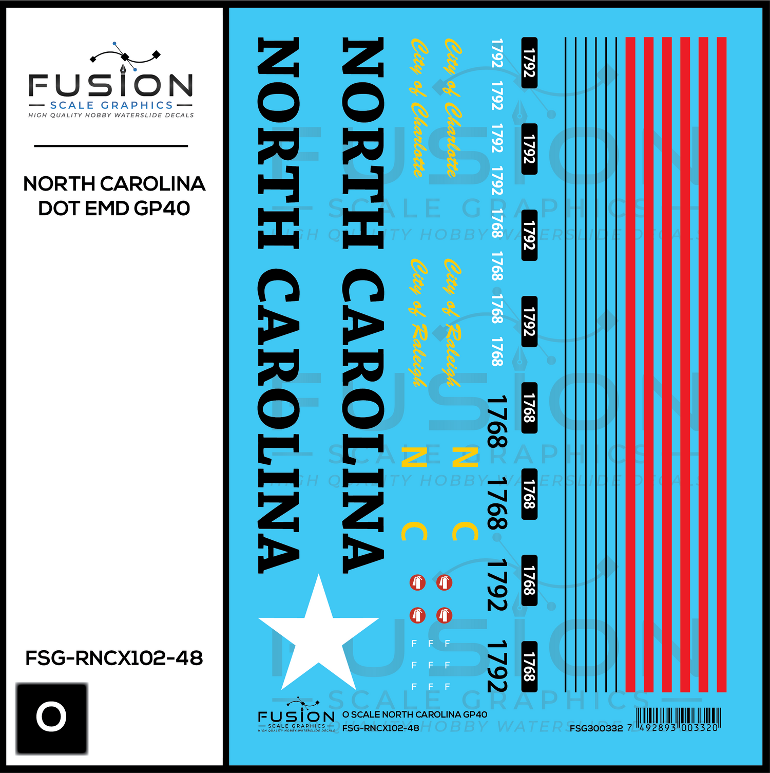 O Scale North Carolina DOT EMD GP40 Locomotive Decal Set