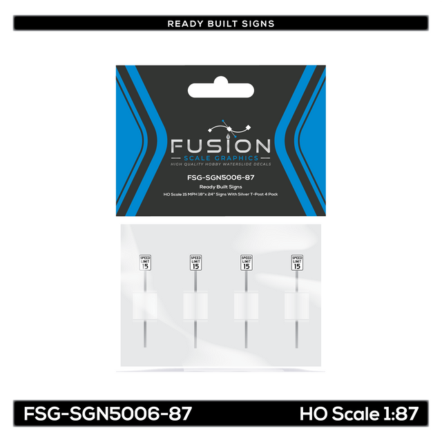 HO Scale 15 MPH 18"x 24" Signs With Silver T-Post 4 Pack may be made to order and will ship within our normal processing time if its not in stock.