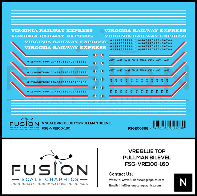 N Scale VRE Virginia Railway Express Blue Top Pullman Bilevels Decal Set