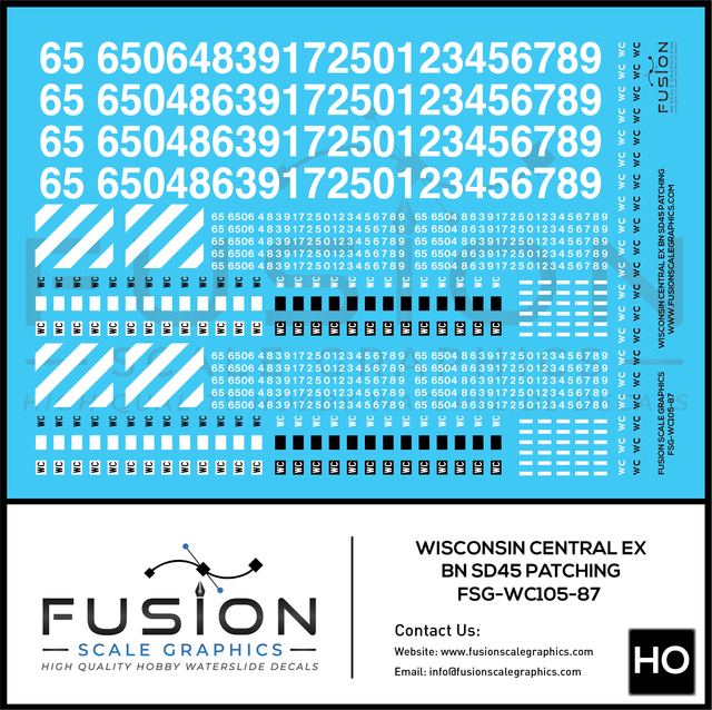 HO Scale Wisconsin Central Ex BN EMD SD45 Locomotive Patching Decal Set