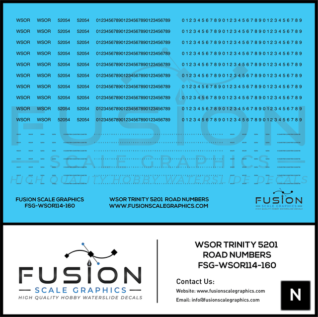 N Scale WSOR Trinity 5201 Road Numbering Decal Set may be made to order and will ship within our normal processing time if its not in stock.