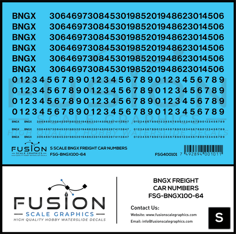 O Scale BNGX Freight Car Numbers Patching Decal Set