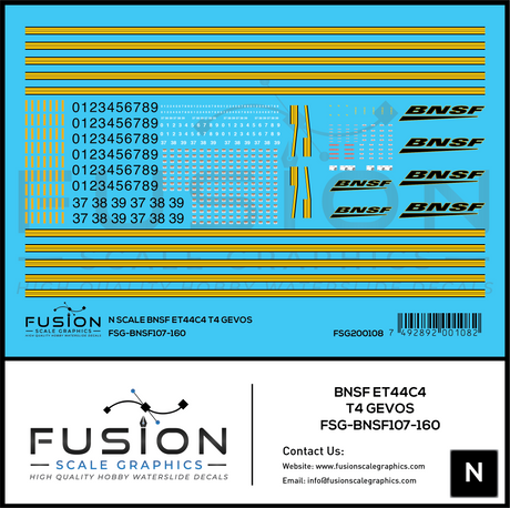 N Scale BNSF Railway GE ET44C4 Tier 4 GEVO Locomotives Decal Set