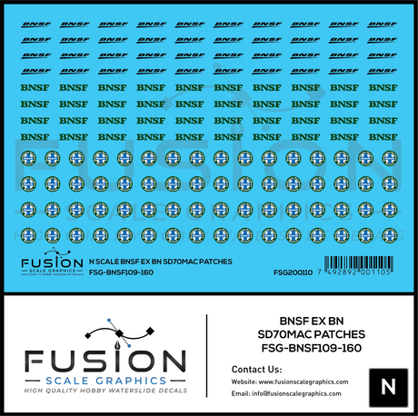 N Scale BNSF Railway Ex BN SD70MAC Locomotive Logo Patches Decal Set