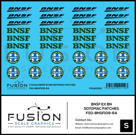 S Scale BNSF Railway Ex BN SD70MAC Locomotive Logo Patches Decal Set