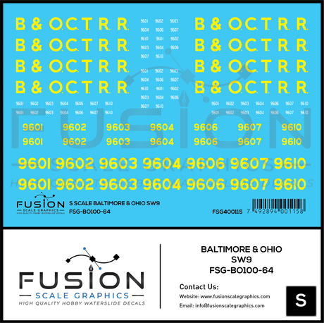 S Scale Baltimore & Ohio EMD SW9 Locomotive Decal Set