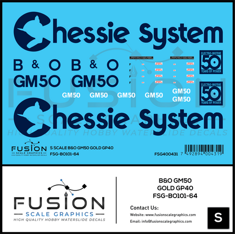 S Scale Baltimore & Ohio EMD 50 Year GM50 Gold GP40 Locomotive Decal Set