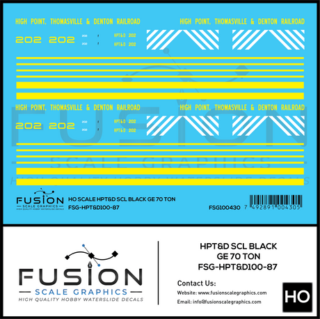 HO Scale High Point Thomasville & Denton Railroad SCL Black GE 70 Ton Switcher Locomotive Decal Set